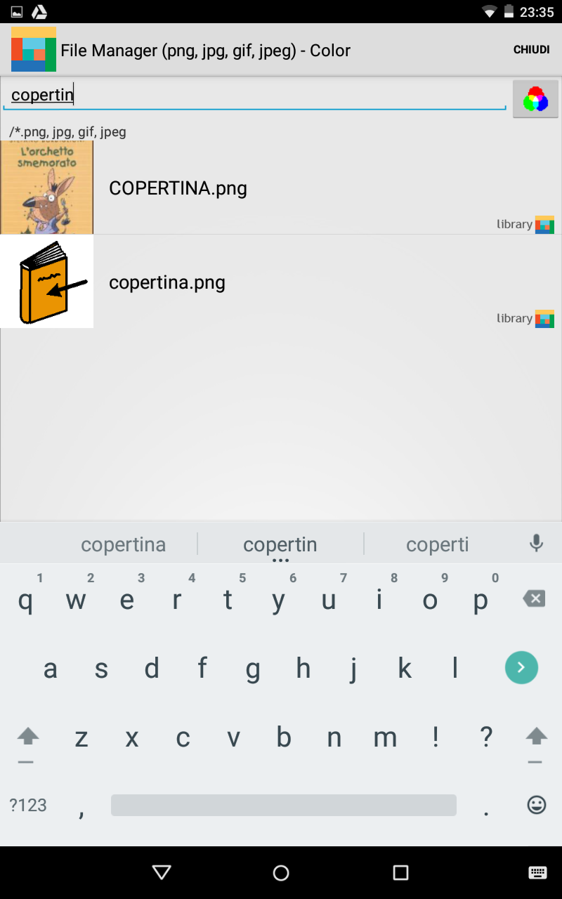 apro il file manager e già vedo come primo simbolo quello che voglio dato che il testo viene utilizzato come campo di ricerca
